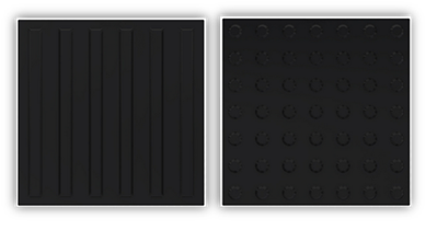 Taktilne ploče crne dimenzija 400 × 400 × 8 mm namijenjene su osobama oštećenog vida i koriste se za upozorenje te olakšavanje orijentacije i sigurnog kretanja štapom u unutrašnjim prostorima – hodnicima, holovima, poslovnim zgradama i javnim objektima.